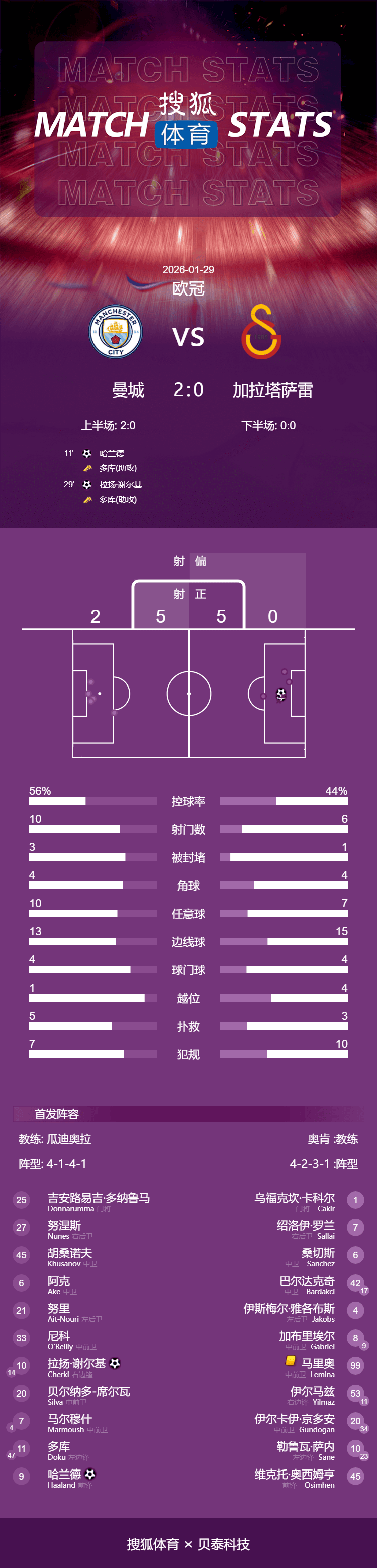 เมื่อเวลา 04.00 น. ของวันที่ 29 มกราคม ตามเวลาปักกิ่ง รอบที่ 8 ของยูฟ่า แชมเปี้ยนส์ ลีก ลีก รอบ 8 ปี 2025-2026 นำเข้าสู่การต่อสู้แบบโฟกัส แมนเชสเตอร์ ซิตี้ เล่นในบ้านกับกาลาตาซารายที่บ้าน ในครึ่งแรก Duku ช่วยเหลือ และ Harland ยิงเบา ๆ กับผู้รักษาประตู ต่อจากนั้น Duoku ส่งผู้ช่วยอีกครั้ง และเชอร์กี้ก็ช่วยเหลืออย่างใจเย็น อย่างไรก็ตาม Doku ไม่สามารถยืนยันที่จะถูกแทนที่โดย Fuden เนื่องจากได้รับบาดเจ็บในครึ่งแรก ในช่วงครึ่งหลัง ไม่มีทีมใดประสบความสำเร็จ ในท้ายที่สุด แมนเชสเตอร์ ซิตี้ เอาชนะกาลาตาซาราย 2-0 และก้าวขึ้นสู่ 16 อันดับแรกของแชมเปี้ยนส์ลีกในฤดูกาลนี้