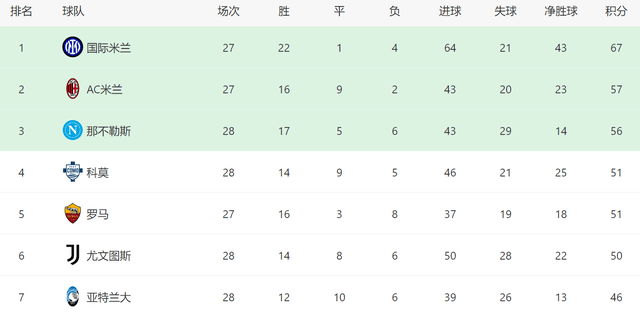 4-0! เซเรียอาอยู่ในความโกลาหล: ยูเวนตุสชนะ + 3 ทีมอยู่ห่างออกไป 1 แต้มและ Cuomo คาดว่าจะเล่นแชมเปี้ยนส์ลีกในสี่อันดับแรก_ranking_this season_inter มิลาน