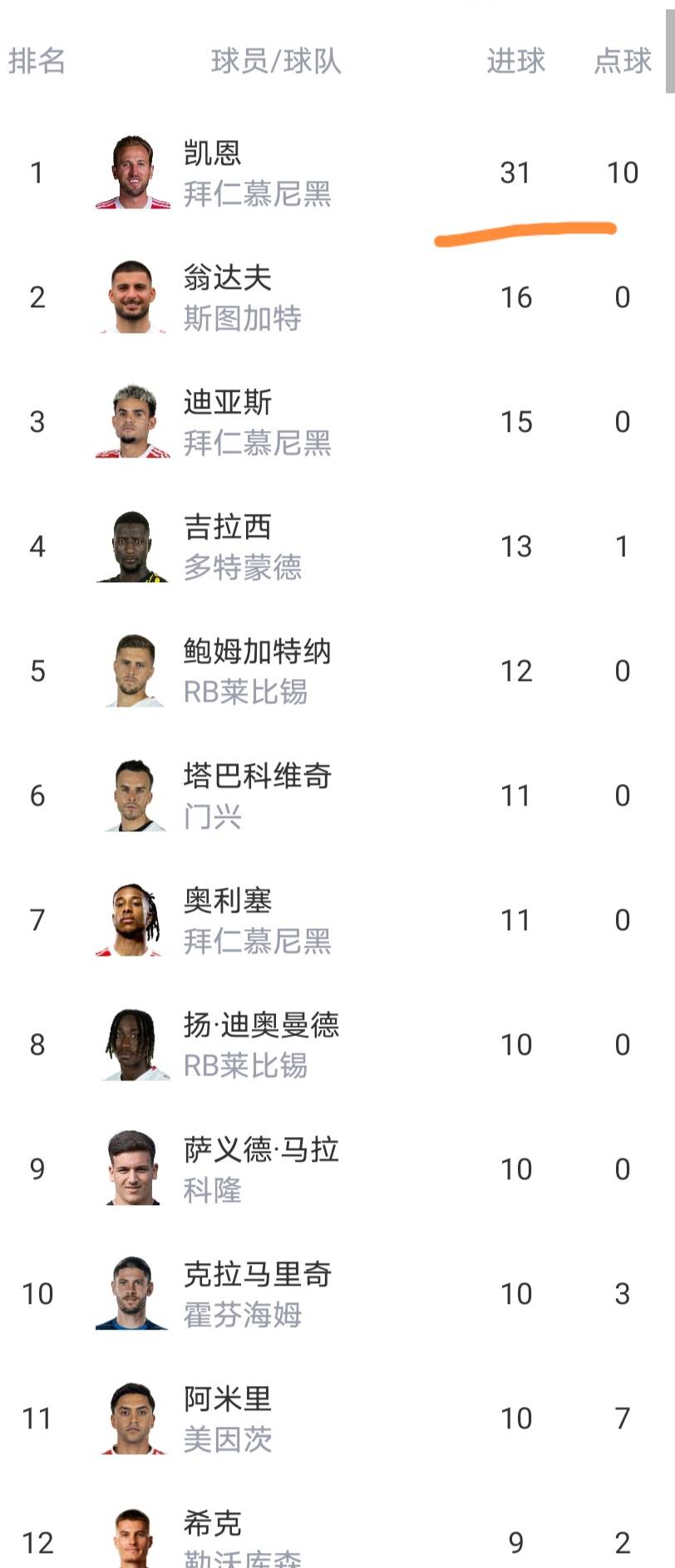 รายชื่อผู้ทำประตู Kane นำ 31 ประตูโดยเป็นผู้นำอย่างมาก