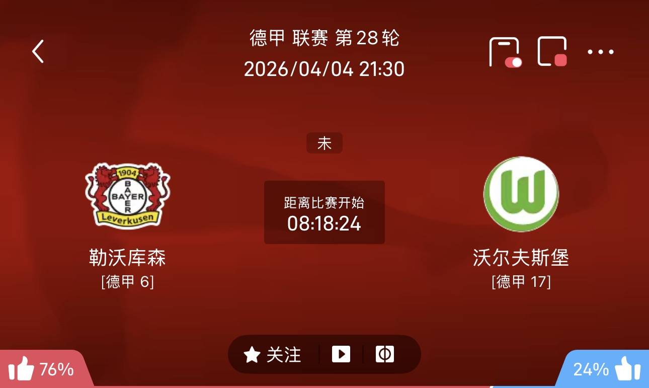 ความแตกต่างระหว่างความแข็งแกร่งและสถานะของทั้งสองฝ่ายนั้นชัดเจน เลเวอร์คูเซ่นนำหน้าอันดับ แม้ว่าเขาจะไม่ได้ชนะสามเกมสุดท้าย แต่เนื้อหาทองคำของคู่ต่อสู้นั้นสูง ในขณะที่โวล์ฟสบวร์กอยู่ยงคงกระพันและความแข็งแกร่งของคู่ต่อสู้นั้นอยู่ในระดับปานกลาง ความได้เปรียบในสนามเหย้าของเจ้าบ้านได้รับพร และเมื่อเผชิญหน้ากับทีมเยือนภายใต้แรงกดดันจากการตกชั้น เลเวอร์คูเซ่นทำคะแนนได้ทั้งสามแต้ม