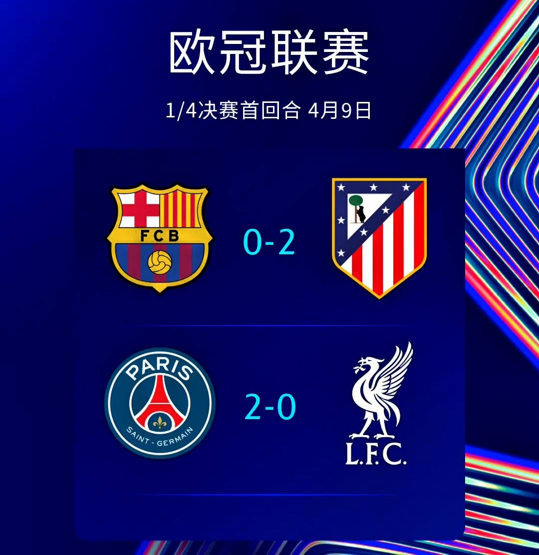 ในเลกแรกของวันที่ 9 เมษายน บาร์เซโลน่า แพ้มาดริด 2-0 ที่บ้าน ขณะที่ ปารีส แซงต์ แชร์กแมง เอาชนะ ลิเวอร์พูล 2-0 ที่บ้าน
