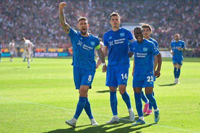 ↑ ผู้เล่น Leverkusen เฉลิมฉลองชัยชนะ