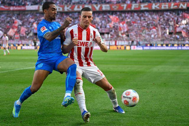 ↑ ผู้เล่นโคโลญจน์ Kaminsky (ซ้าย) และผู้เล่น Leverkusen และการต่อสู้ในเกม