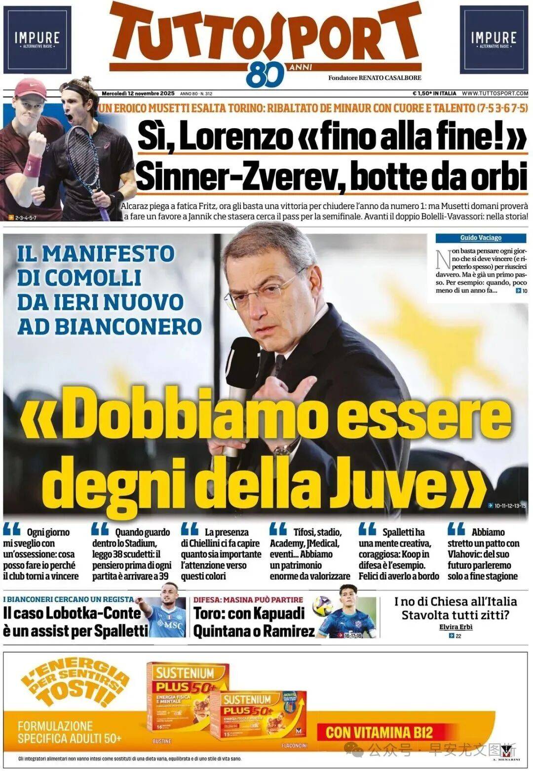 1."เราต้องทำตามมาตรฐานของยูเวนตุส" คำประกาศจากโคโมลลีซีอีโอคนใหม่ของเบียงโคเนรี "ฉันตื่นขึ้นมาทุกวันด้วยความหลงใหล: ฉันต้องทำอะไรเพื่อให้สโมสรนี้ชนะอีกครั้ง? เมื่อฉันมองไปที่สนามกีฬาอัลลิอันซ์ ฉันเห็นแชมป์เซเรียอา 38 สมัย ก่อนทุกนัด ฉันคิดถึงแชมป์ที่ 39"การปรากฏตัวของเคียลลินีเตือนให้เราตระหนักถึงความสำคัญของการรักษาเสื้อสีดำและขาวไว้ให้คงอยู่ ผู้สนับสนุนของเรา สนามกีฬา สถาบันการศึกษา J Medical โครงการต่าง ๆ ของเรา – เราครอบครองทรัพยากรอันมหาศาลที่สามารถนำมาพัฒนาต่อไปได้ สปัลเล็ตติได้นำความคิดสร้างสรรค์และความกล้าหาญมาสู่ทีม ซึ่งได้แสดงให้เห็นผ่านการก้าวขึ้นมาของคูปป์ในตำแหน่งกองหลัง เราดีใจที่เขามาอยู่ที่นี่เราได้บรรลุข้อตกลงกับวลาโฮวิชแล้ว: เราจะหารือเกี่ยวกับอนาคตของเขาหลังจากจบฤดูกาลนี้
