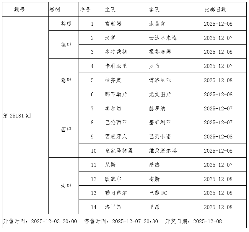 การแข่งขันฟุตบอลแบบชนะ-เสมอ-แพ้ และแบบเลือก 9 คู่ใดก็ได้ ฉบับที่ 25181 นี้ เป็นช่วงเวลาที่มีการแจกรางวัลพิเศษ ขอแนะนำให้ผู้สนใจเข้าร่วมอย่างมีความรับผิดชอบ รอบนี้ประกอบด้วยการแข่งขันจาก 5 ลีกชั้นนำของยุโรป ได้แก่ อังกฤษ เยอรมนี อิตาลี สเปน และฝรั่งเศส ไฮไลท์สำคัญคือการพบกันระหว่างนาโปลีและยูเวนตุสในศึกกัลโช่ เซเรีย อา ขณะที่เรอัล มาดริด ซึ่งเสียตำแหน่งจ่าฝูงลาลีกาไปแล้ว จะเปิดบ้านต้อนรับเซลต้า บีโก้