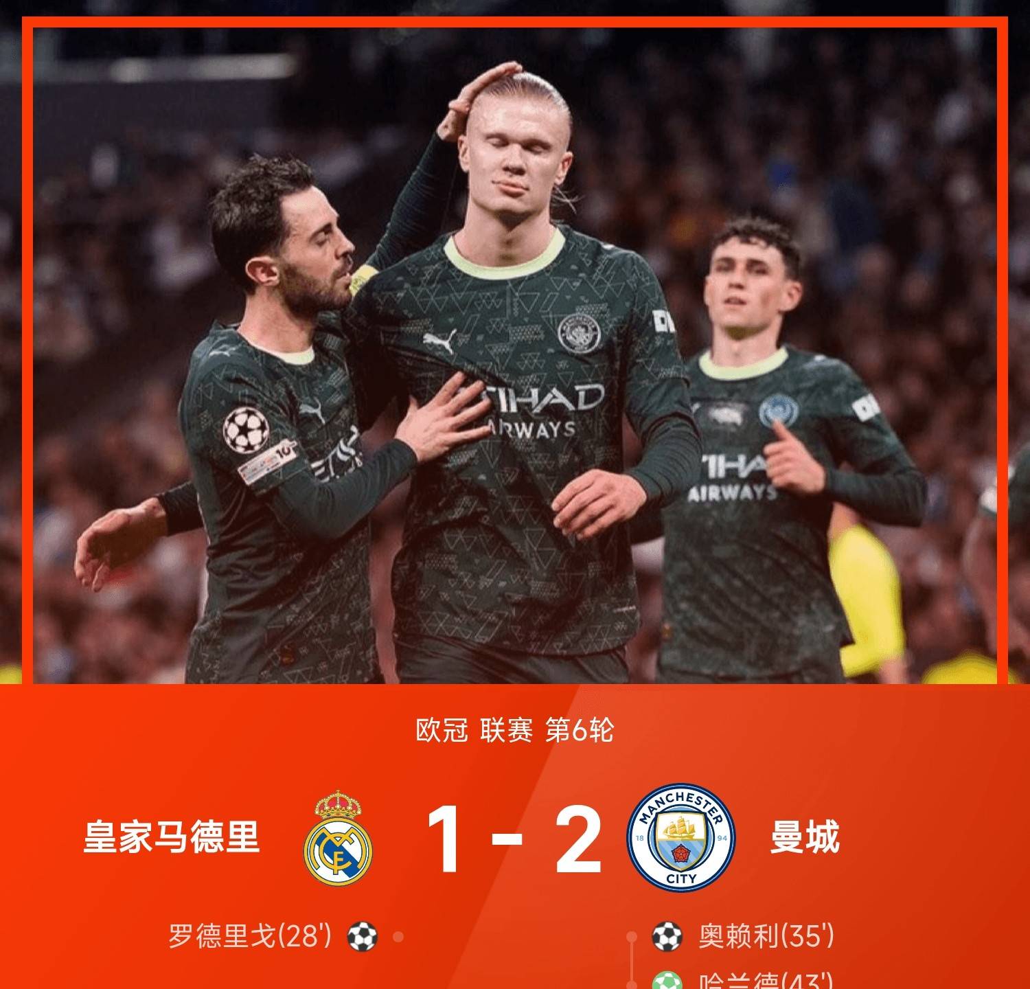 แมนเชสเตอร์ ซิตี้ คว้าชัยชนะ 2-1 ในการกลับมาที่สนามของเรอัล มาดริด ยุติสถิติชนะติดต่อกันของเจ้าบ้าน น่าเสียดายที่การเซฟของธิโบต์ กูร์ตัวส์ ไม่เพียงพอที่จะหยุดยั้งอิทธิพลที่เด็ดขาดของเออร์ลิง ฮาลันด์ เรอัล มาดริด ขึ้นนำก่อน แต่ซิตี้ปรับตัวได้อย่างรวดเร็ว พลิกสถานการณ์ด้วยการยิงจุดโทษ การแข่งขันยังคงเป็นที่ถกเถียงกันอย่างมาก โดยมีการอภิปรายอย่างกว้างขวาง