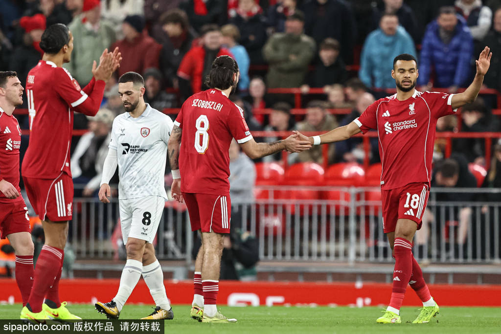 เวลา 03:45 น. ตามเวลาปักกิ่ง วันที่ 13 มกราคม การแข่งขันเอฟเอคัพ ฤดูกาล 2025-26 รอบสาม ยังคงดำเนินต่อไป โดยลิเวอร์พูลเอาชนะบาร์นสลีย์ ทีมจากลีกวัน ไปอย่างขาดลอย 4-1 ที่สนามแอนฟิลด์ ผ่านเข้าสู่รอบสี่ได้สำเร็จ และยุติสถิติเสมอสามนัดติดต่อกันในนัดแข่งขันอย่างเป็นทางการในรอบต่อไป พวกเขาจะเป็นเจ้าบ้านรับการมาเยือนของไบรท์ตัน ซโบซโซไล ยิงประตูสุดสวยในนาทีที่ 9 และฟลานาแกนทำประตูเพิ่มในนาทีที่ 36 ก่อนที่ซโบซโซไลจะทำผิดพลาดอย่างง่าย ๆ ก่อนครึ่งแรก ทำให้ฟิลลิปส์ทำประตูตีตื้นได้ ในช่วงท้ายเกม วิร์ตซ์และเอคิติเก้แลกเปลี่ยนการส่งบอลและยิงประตูปิดสกอร์ให้กับลิเวอร์พูล